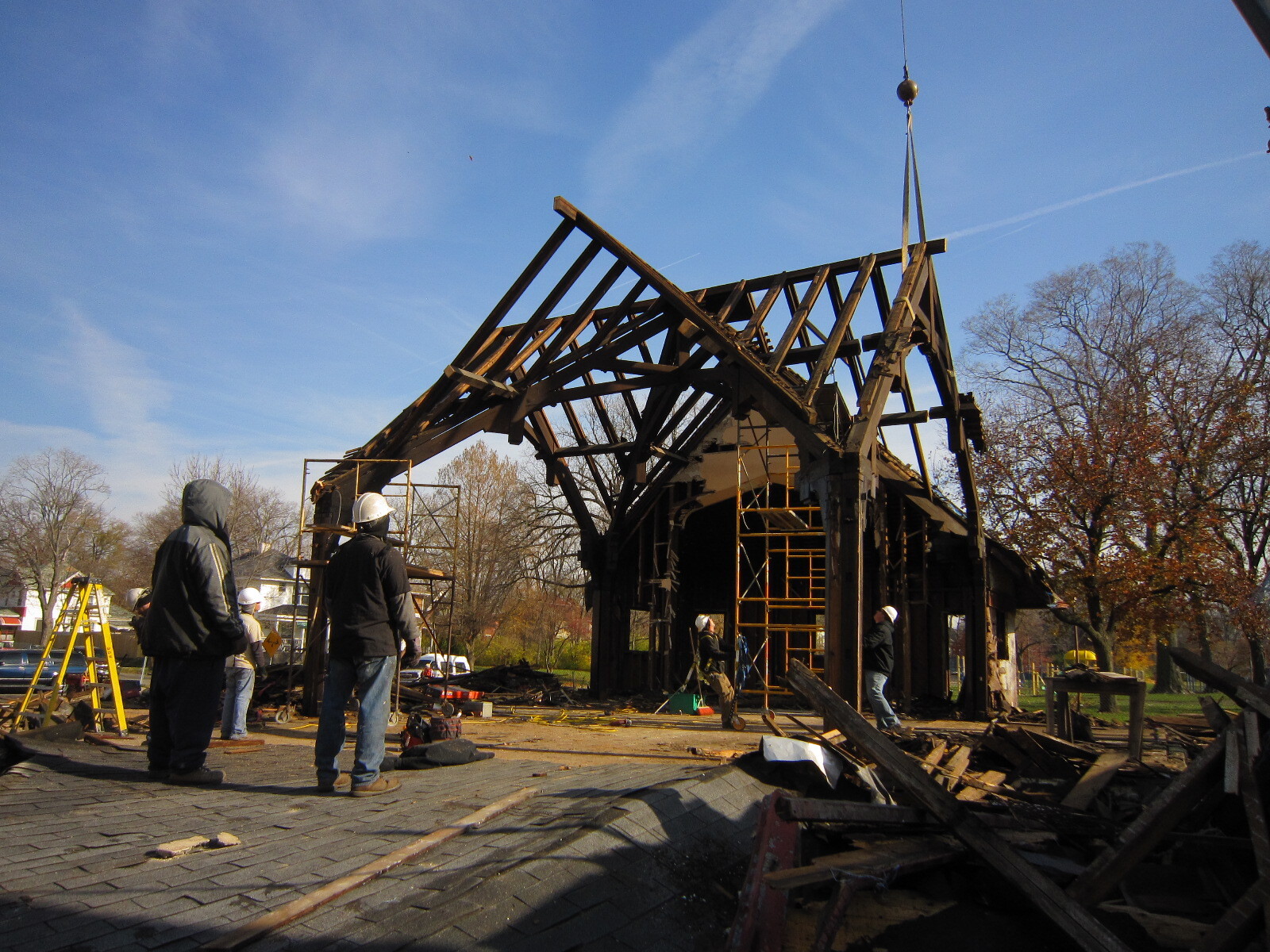 The new addition would be unlike anything ever built in Dayton – an addition constructed from nearly all reclaimed historic material from up to 20 separate historic structures including The Huffman School, The Stockyards, a few houses built in the 1850’s, and a downtown office building. With the help of James Kent and Jeff Wysong, a 108-year-old church was salvaged and rebuilt as the new addition. Construction of the church took place with Mark Shannon, who originally built The Dublin Pub, teaming up with Steve Tieber, designers Mitch Perry & Mitch Powers, and the technical expertise of Architect Doug Fisher, and a master plan was launched to construct a new addition composed or recycled and salvaged wood dating 150 years to 500 years old. The new addition has brought new life into the pub as well as new life into The Historic Oregon District & Downtown Dayton.